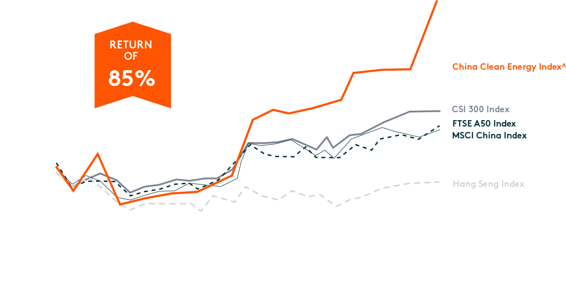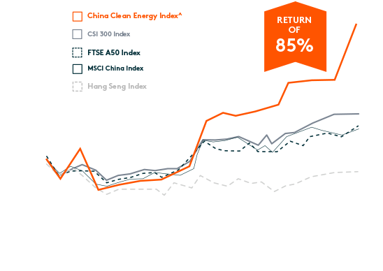 Comparison between China Clean Energy Index^ and Various Major Broad Market China and Hong Kong Indices