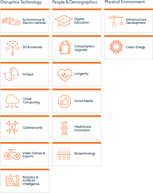 In a single trade, gain access to dozens of innovative Chinese companies across multiple disruptive themes reshaping the economy.