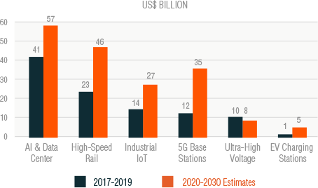 CHINA’S ACTUAL AND PROJECTED ANNUAL EXPENDITURE ON NEW INFRASTRUCTURE