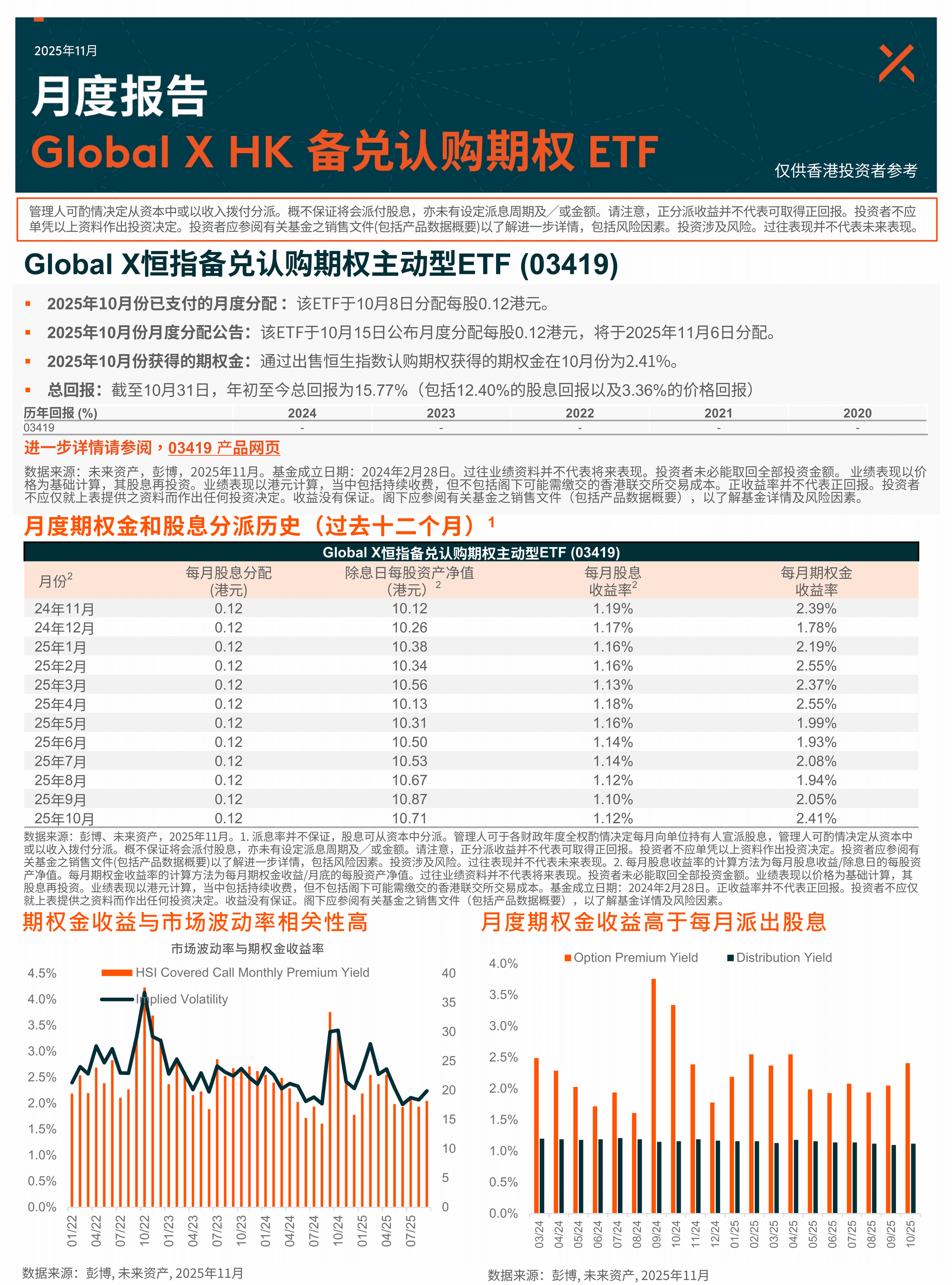 月度报告 – 备兑认购期权ETF – 2025年11月