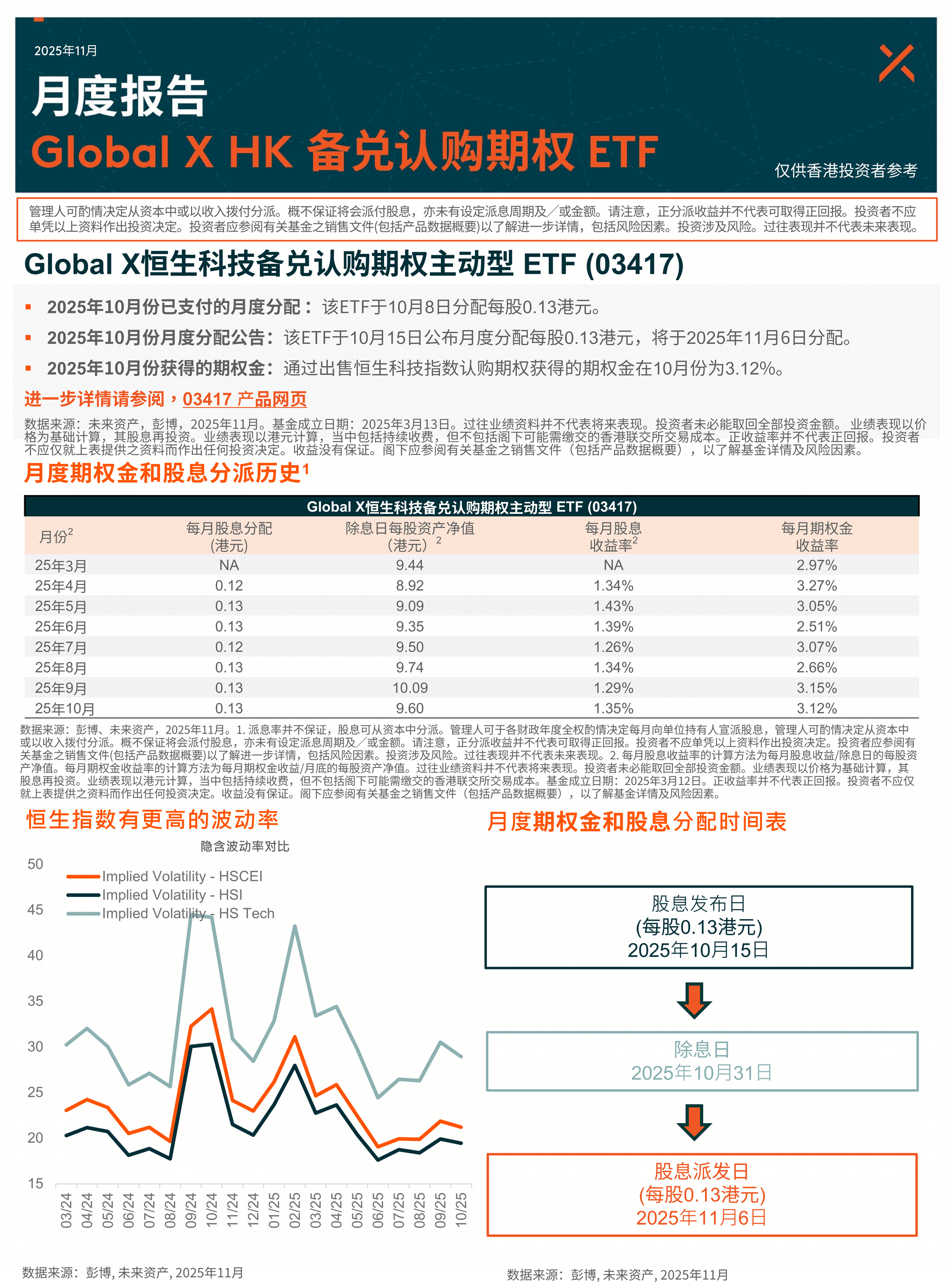 - Global X 恒指备兑认购期权主动型ETF(「本基金」)的投资目标是透过主要(i)投资于恒生指数(「参考指数」或「恒指」)的成份股本证券;及(ii)出售(即「沽出」)参考指数的认购期权以收取认购期权买方支付的款项(即「期权金」),以产生收入。