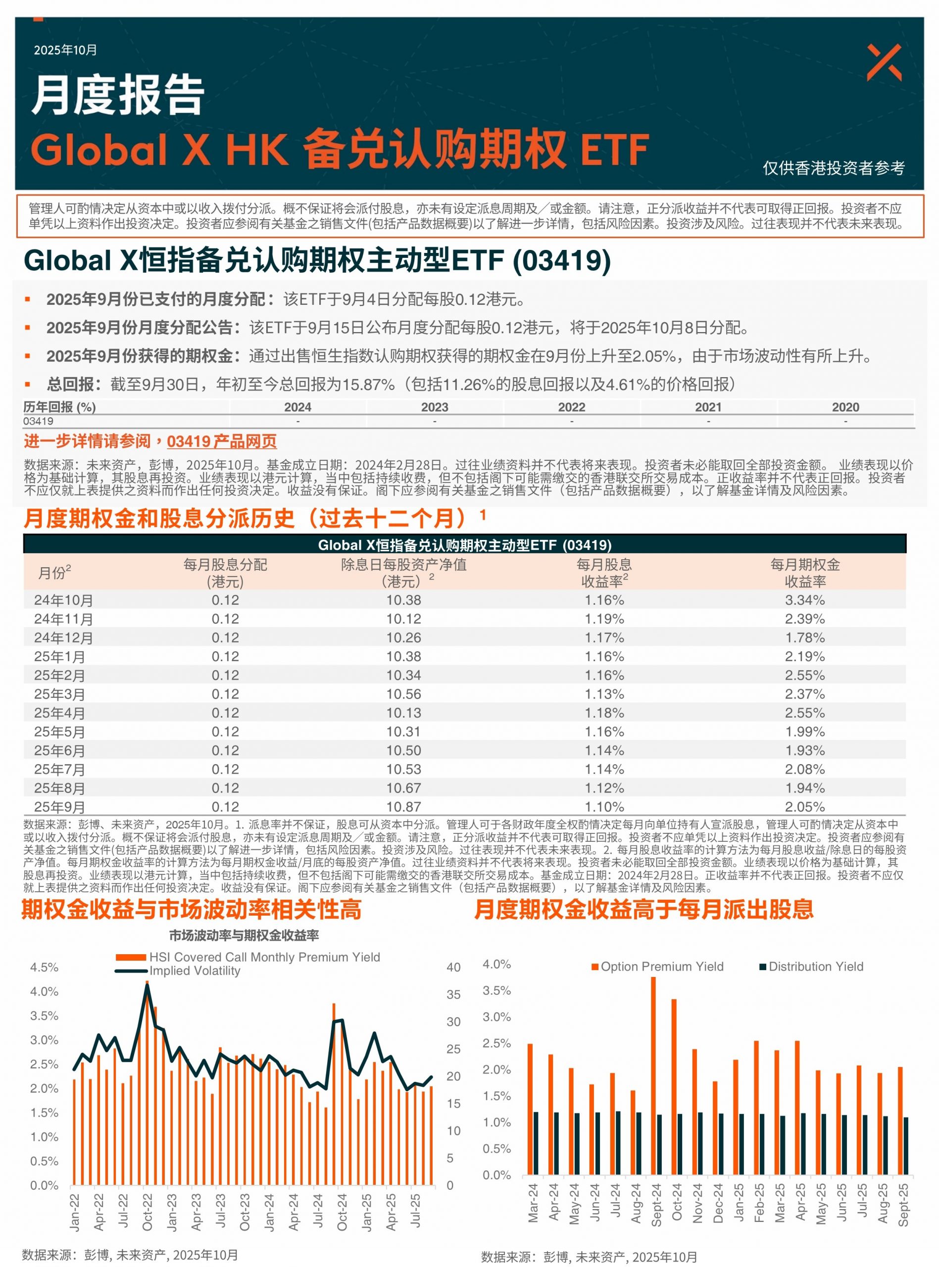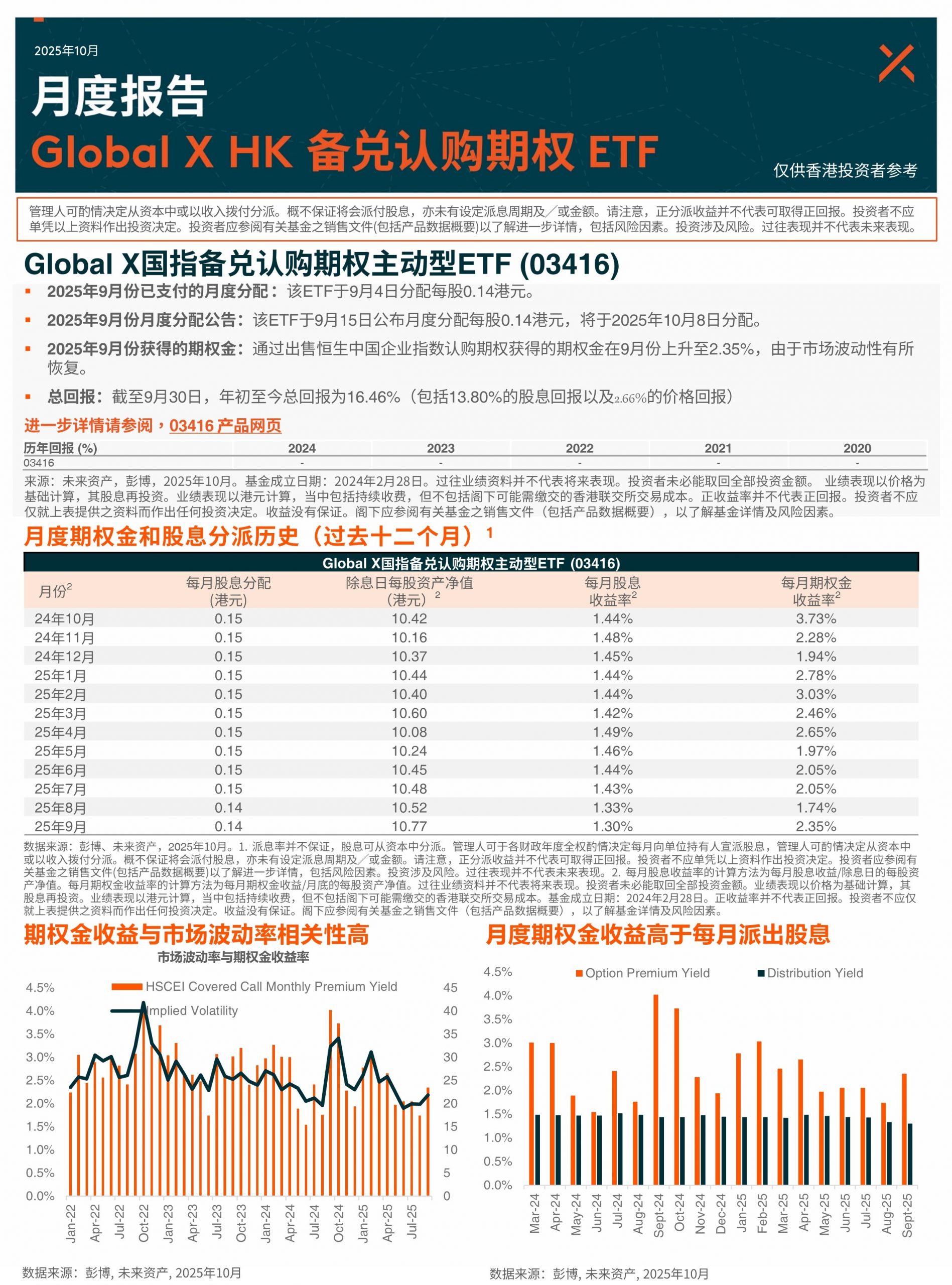 月度报告 – 备兑认购期权ETF – 2025年10月