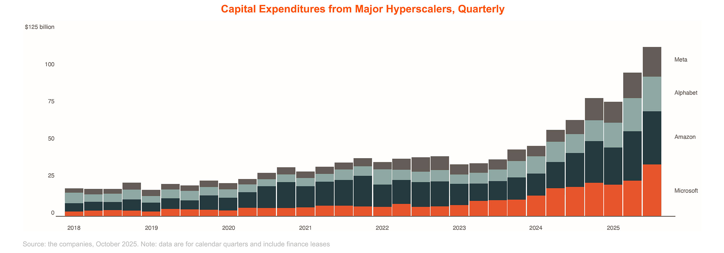 - AI spending trending strong: the top 4 hyperscalers spent over $100 billion on AI Capex in 3Q25, as AI infrastructure demand continues to outpace supply.