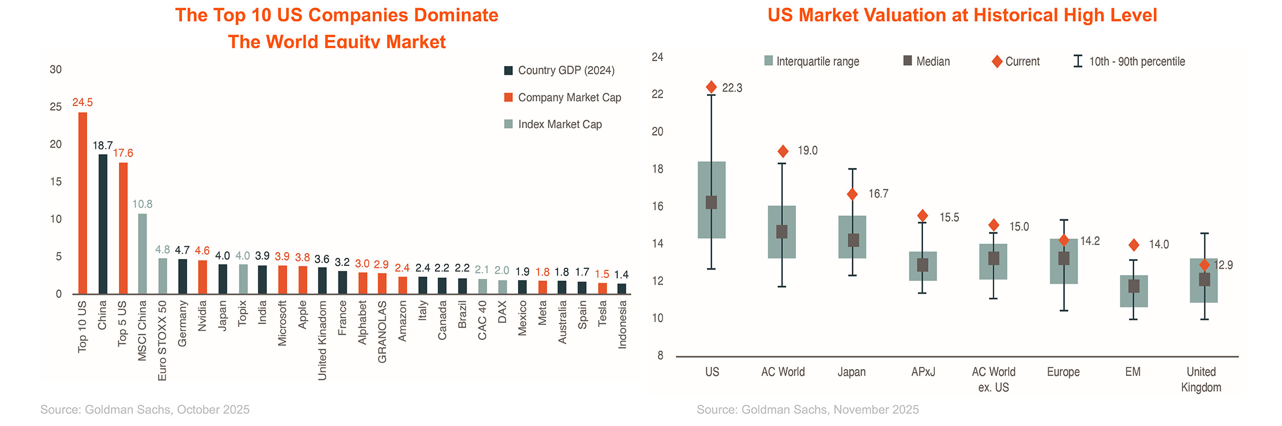 - We are cautious on the US equity market into 2026. Valuation for US market is at historical high level, making the market more vulnerable