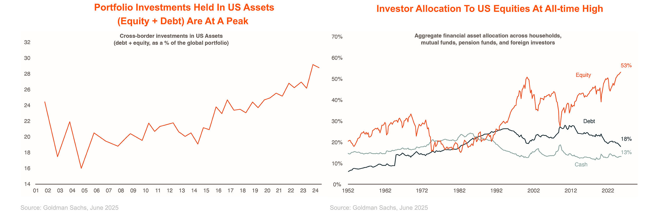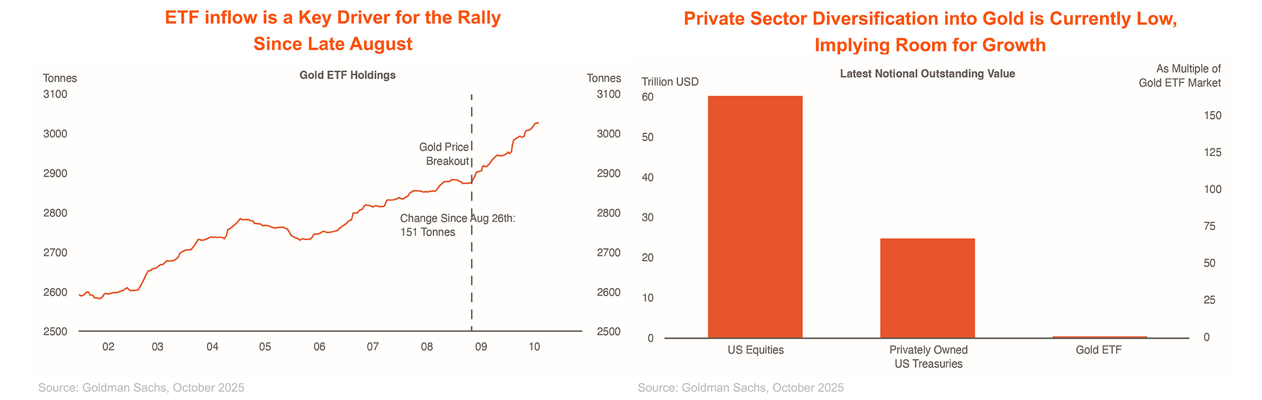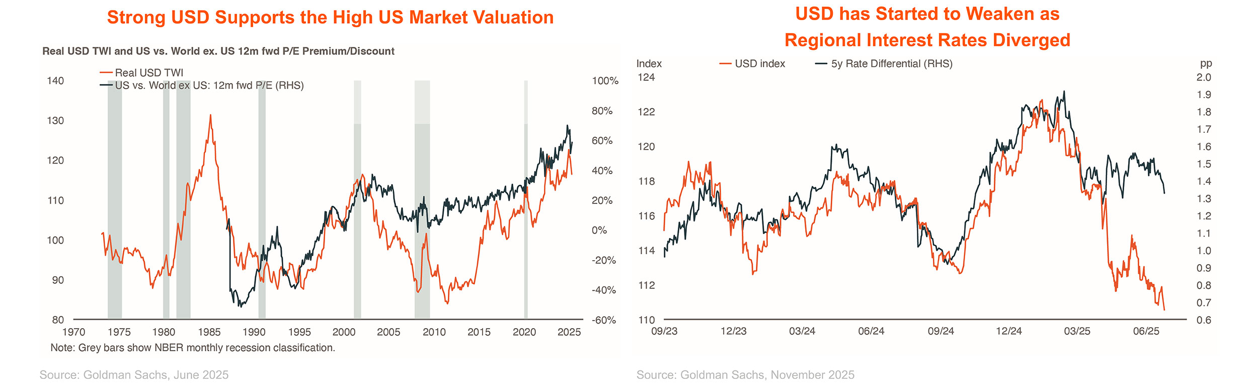 - Since the start of 2025, resilient non-US economy, coupled with higher US deficits and greater uncertainty on policy have pushed up the risk premium on the US dollar. This leads to the depreciate of USD and makes non-US equities more attractive for USD-based investors, which is another driver of diversification flows.
