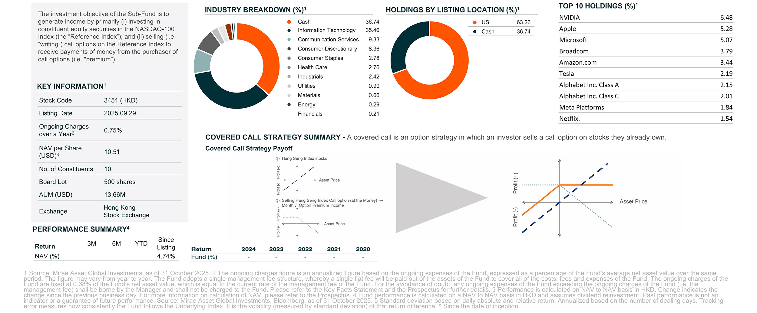 - If the value of the securities relating to the Reference Index held by the Fund declines, the premium that the Fund received for writing the Reference Index Call Option may reduce such loss to some extent. However, the downside of adopting a covered call strategy is that the Fund’s opportunity to profit from an increase in the level of the Reference Index is limited to the strike price of the Reference Index Call Options written, plus the premium received.