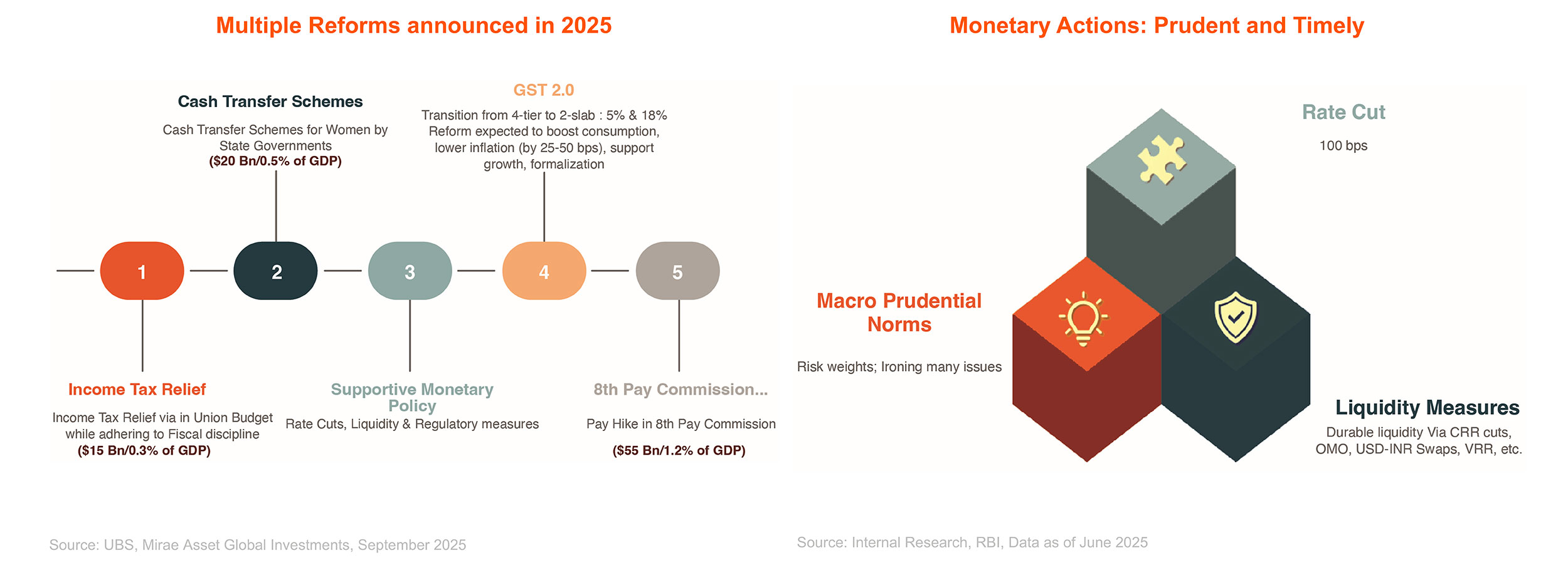 - Consumer gains from GST savings likely to fuel spending, adding 20-30bps to GDP growth in FY26
