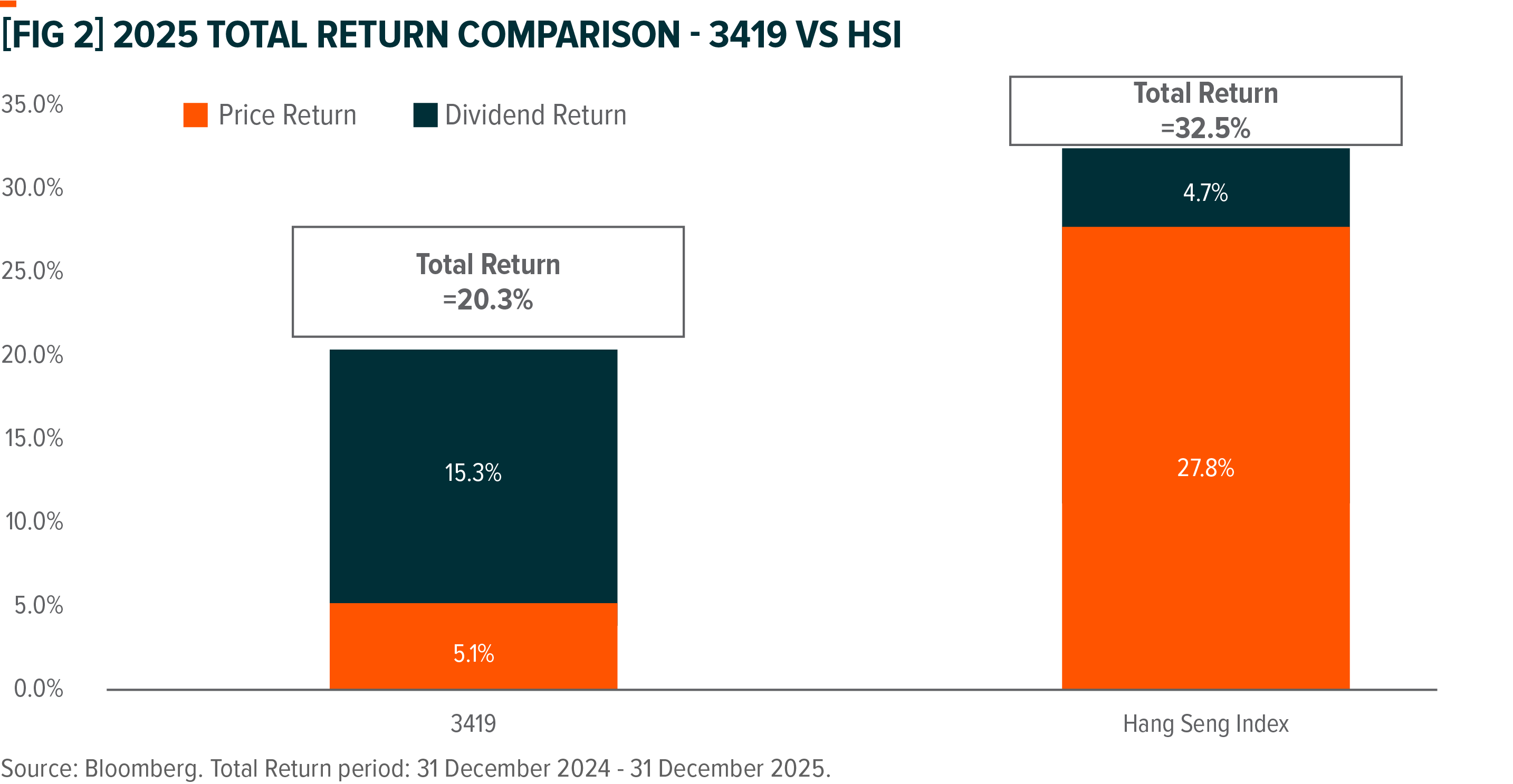 - Compared to peer Covered Call ETFs, 3416 HK & 3419 HK have the highest dividend returns in 2025, while still maintain positive price gains for investors. (Fig 6)