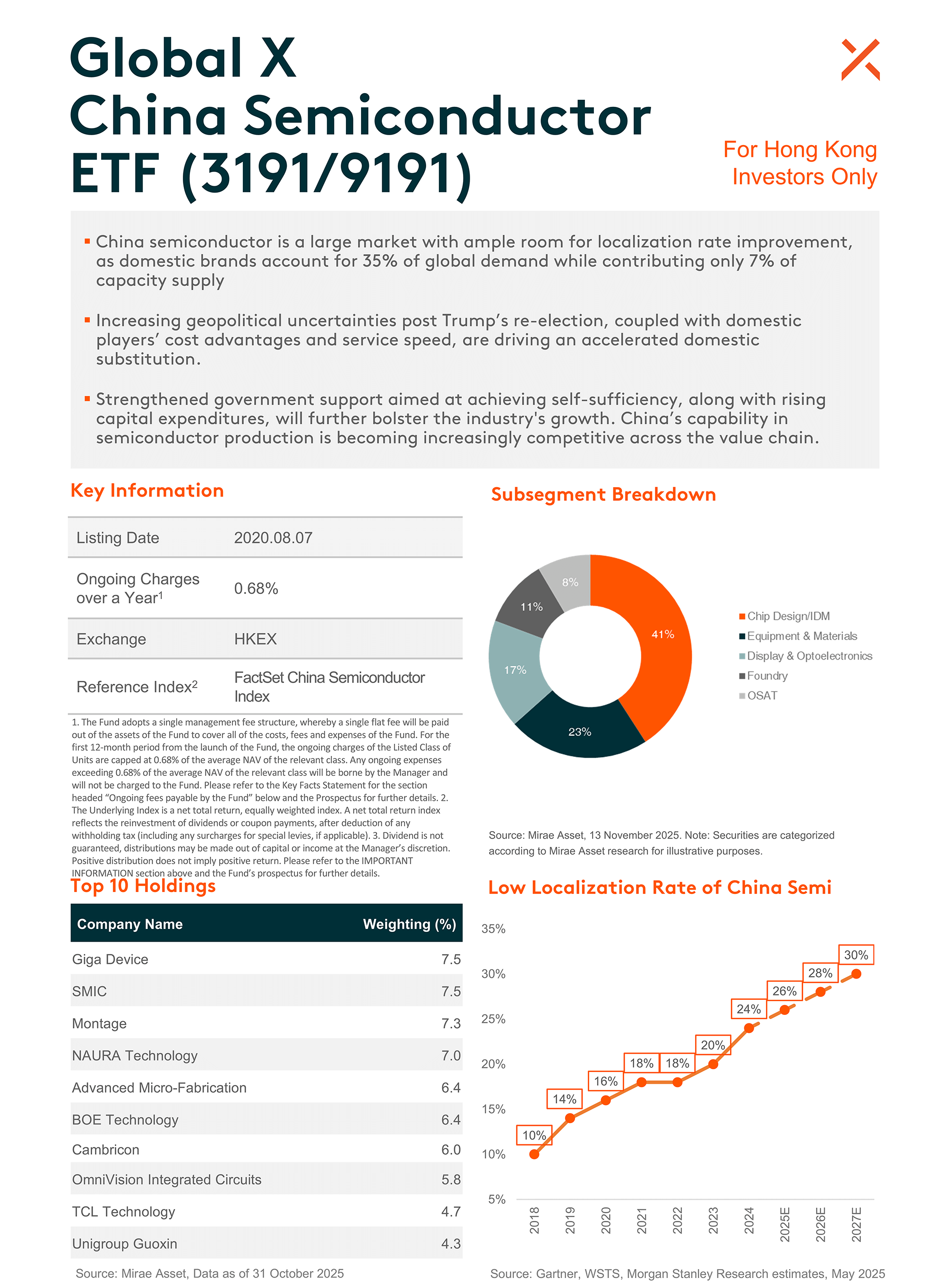 Reason for inclusion: With technological self-reliance reaffirmed as a key focus of the 15th FYP, China’s journey toward semiconductor localization represents a long-term structural growth opportunity. |