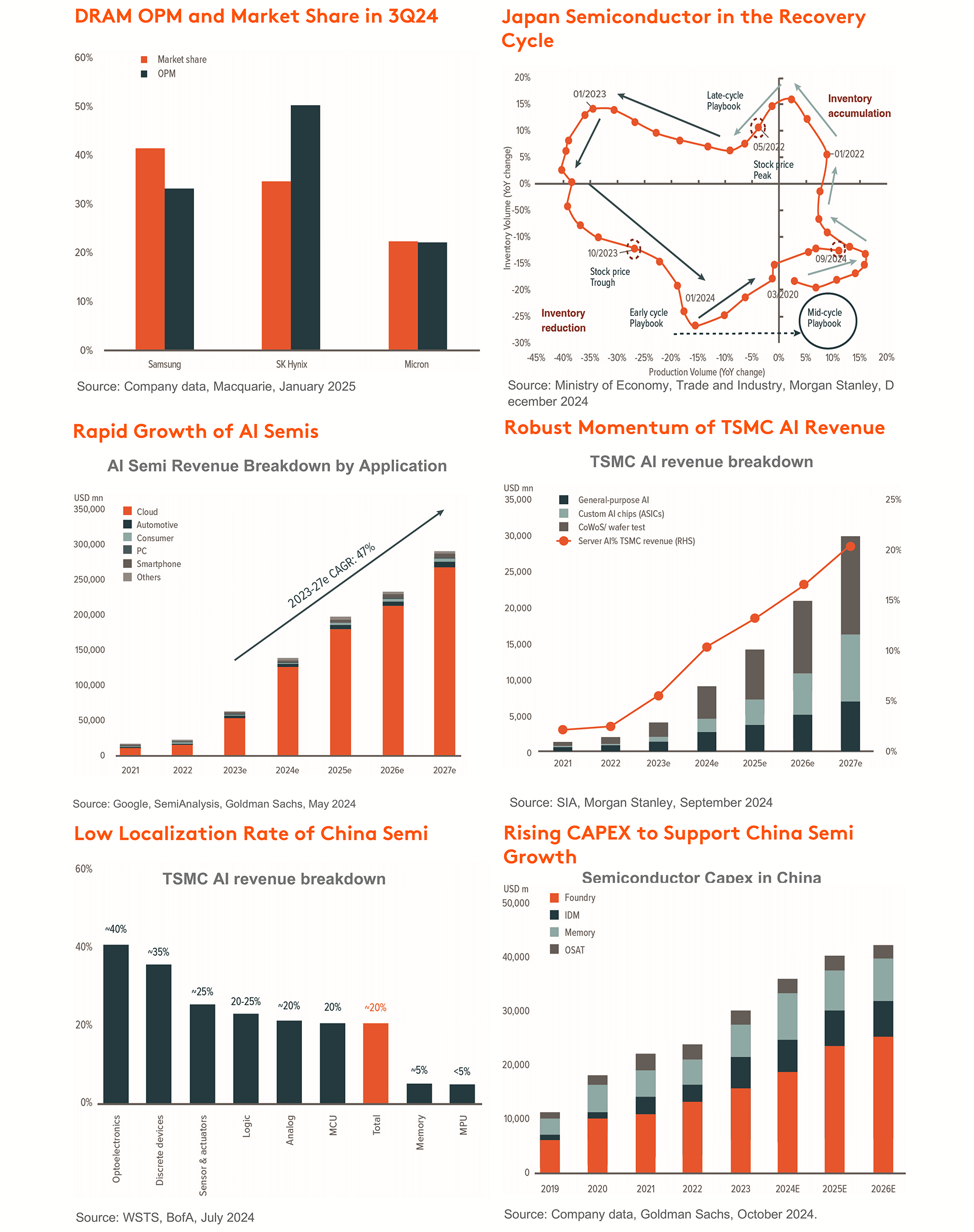 | China’s semiconductor industry is positioned for structural growth, driven by two key catalysts. First, the low localization rate is set to rise, supported by persistent government backing and ongoing U.S.-China tech tensions. Second, the rapid development of cutting-edge AI models and applications within China is fueling a surge in domestic demand for AI compute, energizing the entire hardware supply chain. | ||||||||||||||||||||||