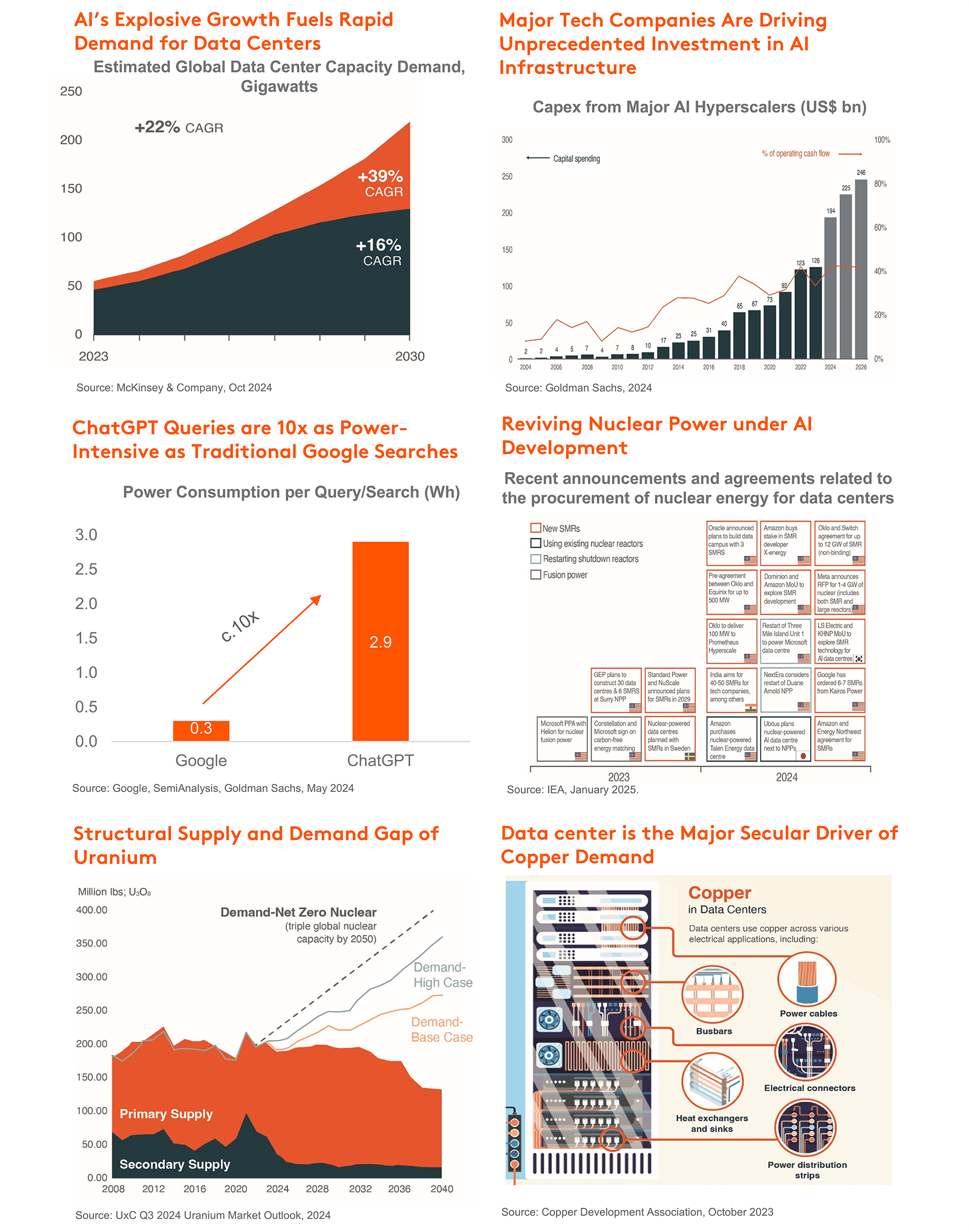 | The top 4 hyperscalers spent over $100 billion on AI capex in 3Q25, yet demand continues to outpace supply. Furthermore, the U.S. data center pipeline exceeds 125 GW—nearly five times the existing capacity. Morgan Stanley (October 2025) projects a 49 GW U.S. power generation shortfall by 2028, a constraint that is now igniting a nuclear energy renaissance. This structural imbalance suggests the AI infrastructure market will remain supply-constrained for the foreseeable future. |