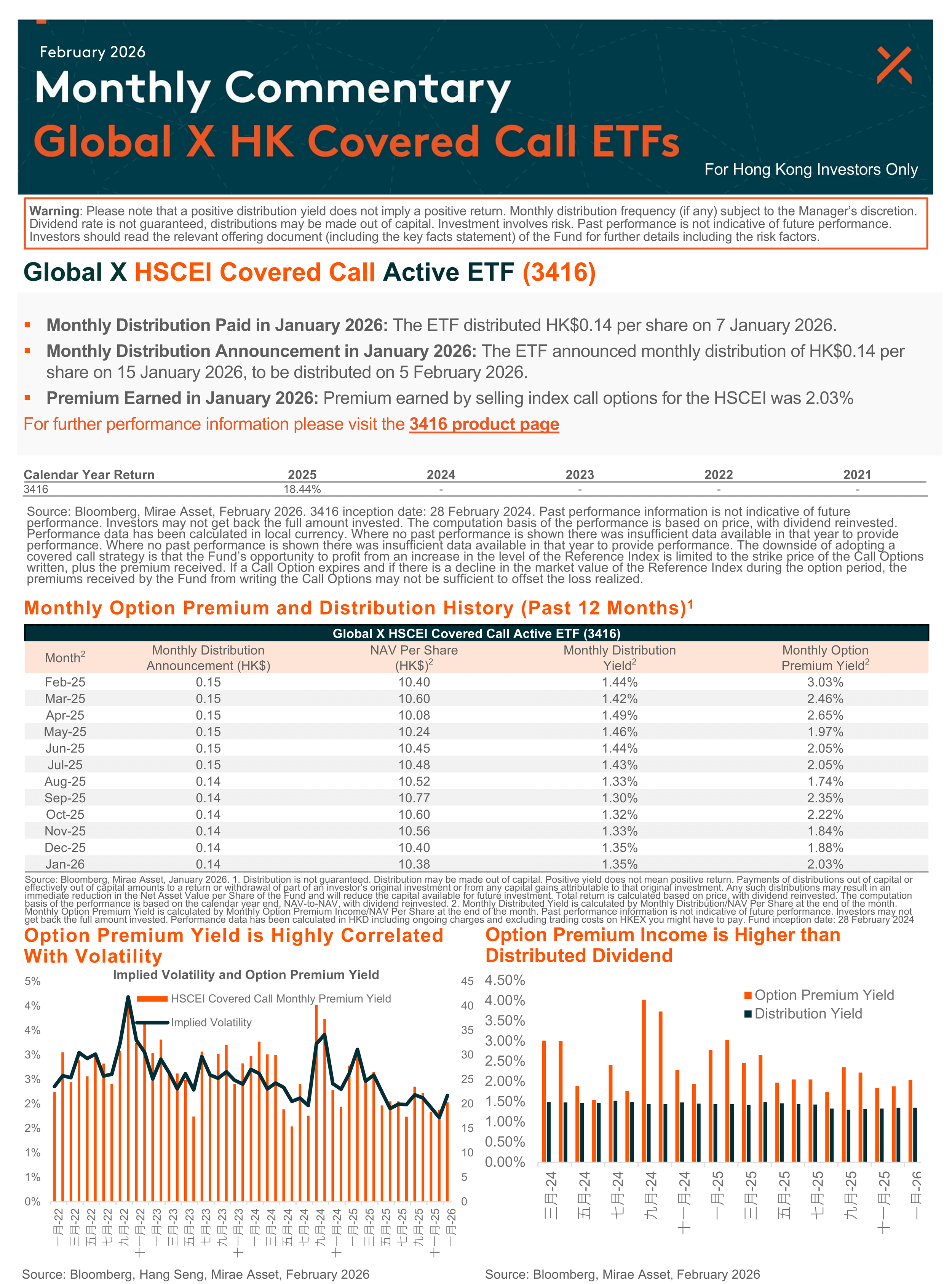 - The investment objective of Global X Hang Seng TECH Covered Call Active ETF (the “Funds”) is to generate income by primarily investing in constituent equity securities in the Hang Seng TECH Index (the “Reference Index”) and selling (i.e. “writing”) call options on the Reference Indexes respectively to receive payments of money from the purchaser of call options (i.e. “premium”).