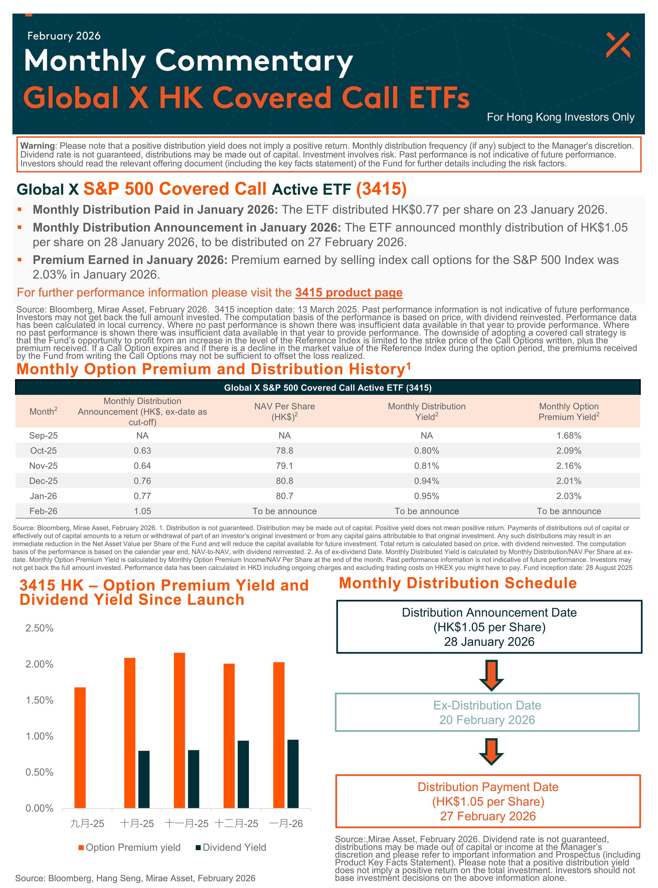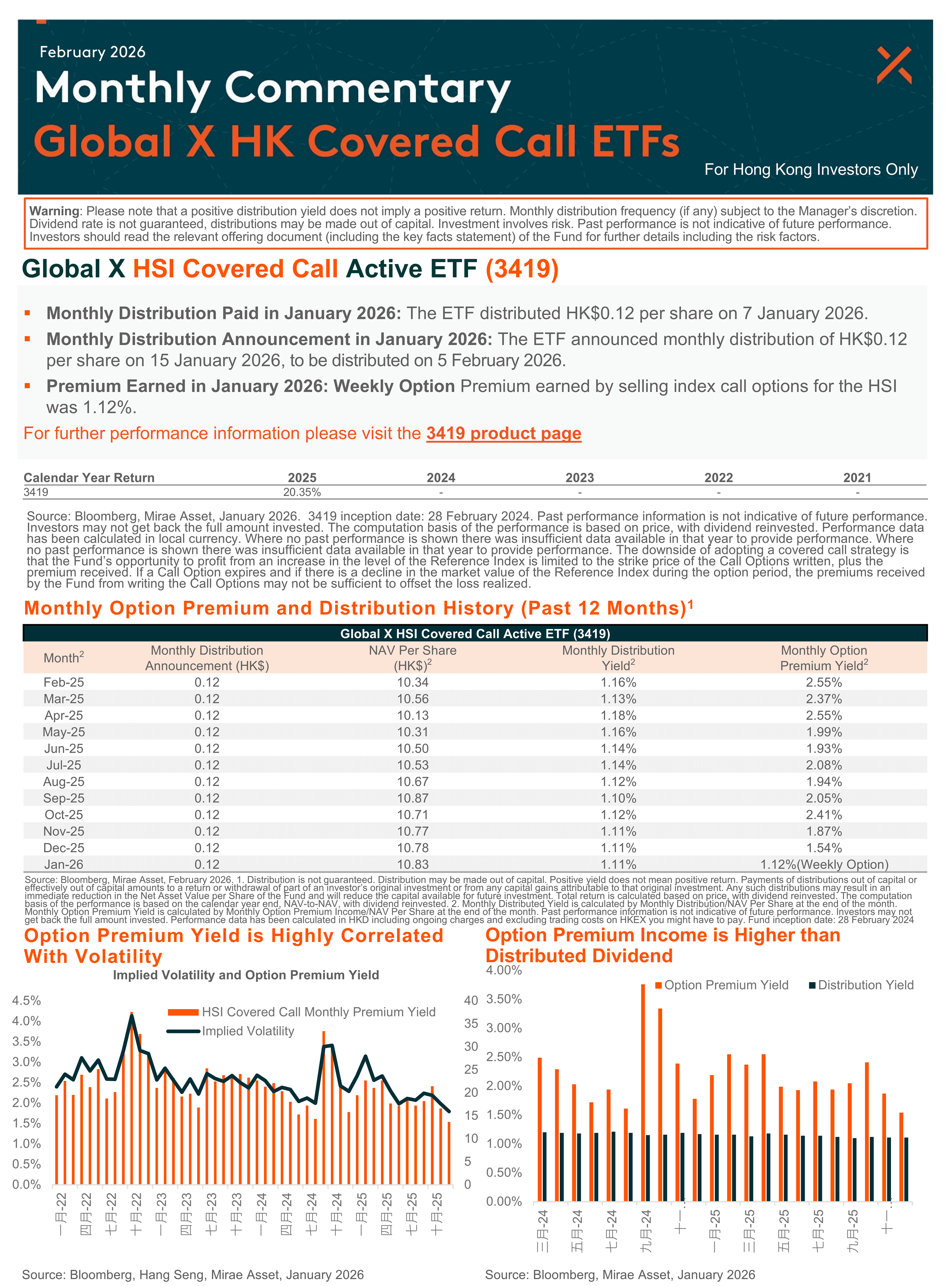 - The investment objective of Global X HSI Covered Call Active ETF (the “Funds”) is to generate income by primarily investing in constituent equity securities in the Hang Seng Index (the “Reference Index”) and selling (i.e. “writing”) call options on the Reference Indexes respectively to receive payments of money from the purchaser of call options (i.e. “premium”).