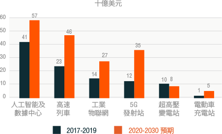 隨著勞動力市場擴張以及投資不再維持經濟增長,中國早已明白創新驅動型發展的必要性。 例如“中國製造2025”3的政策便選擇以高科技產業來支持國家,而“新基礎設施”項目則旨在擴大中國的數碼網絡,從而使創新產業得以蓬勃發展。