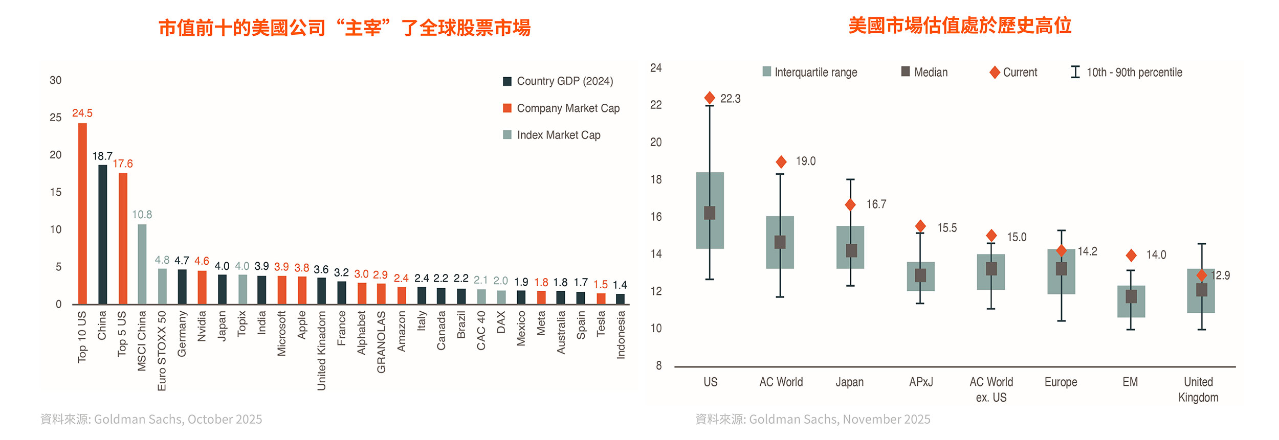 - 我們對2026年之前的美國股市持謹慎態度。當前美股估值處於歷史高位,這使市場顯得更為脆弱。