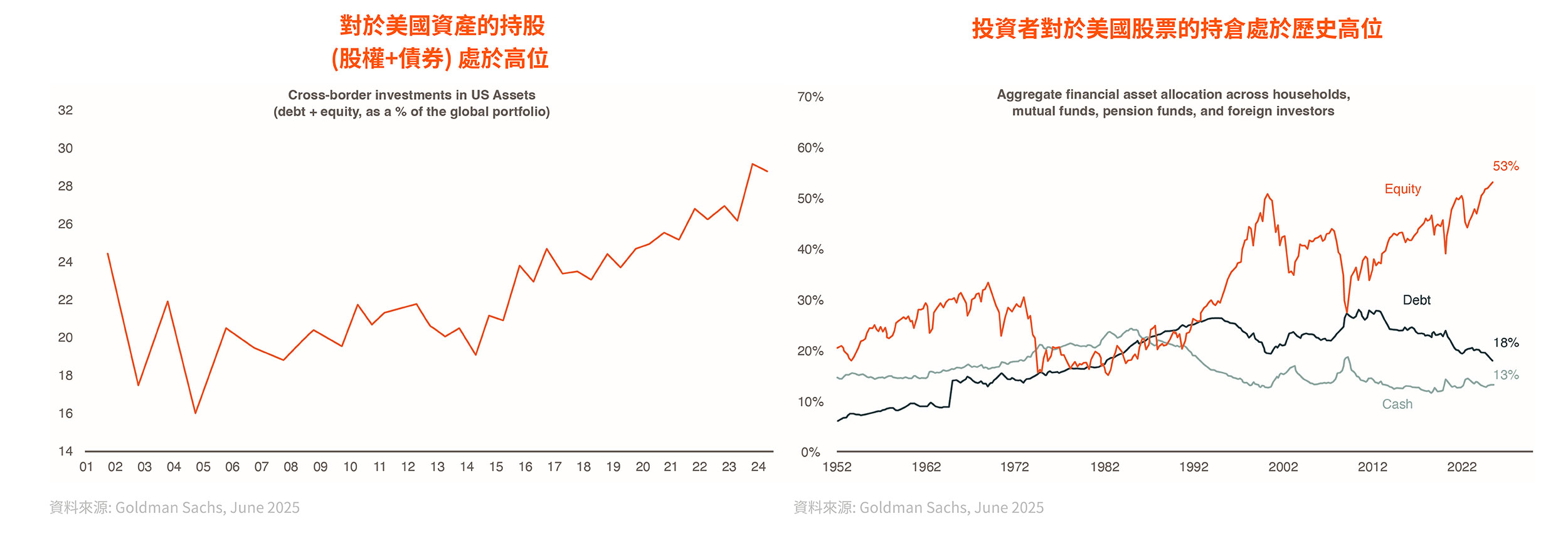 美國資產持倉占比在美國和非美投資者中都處於高位