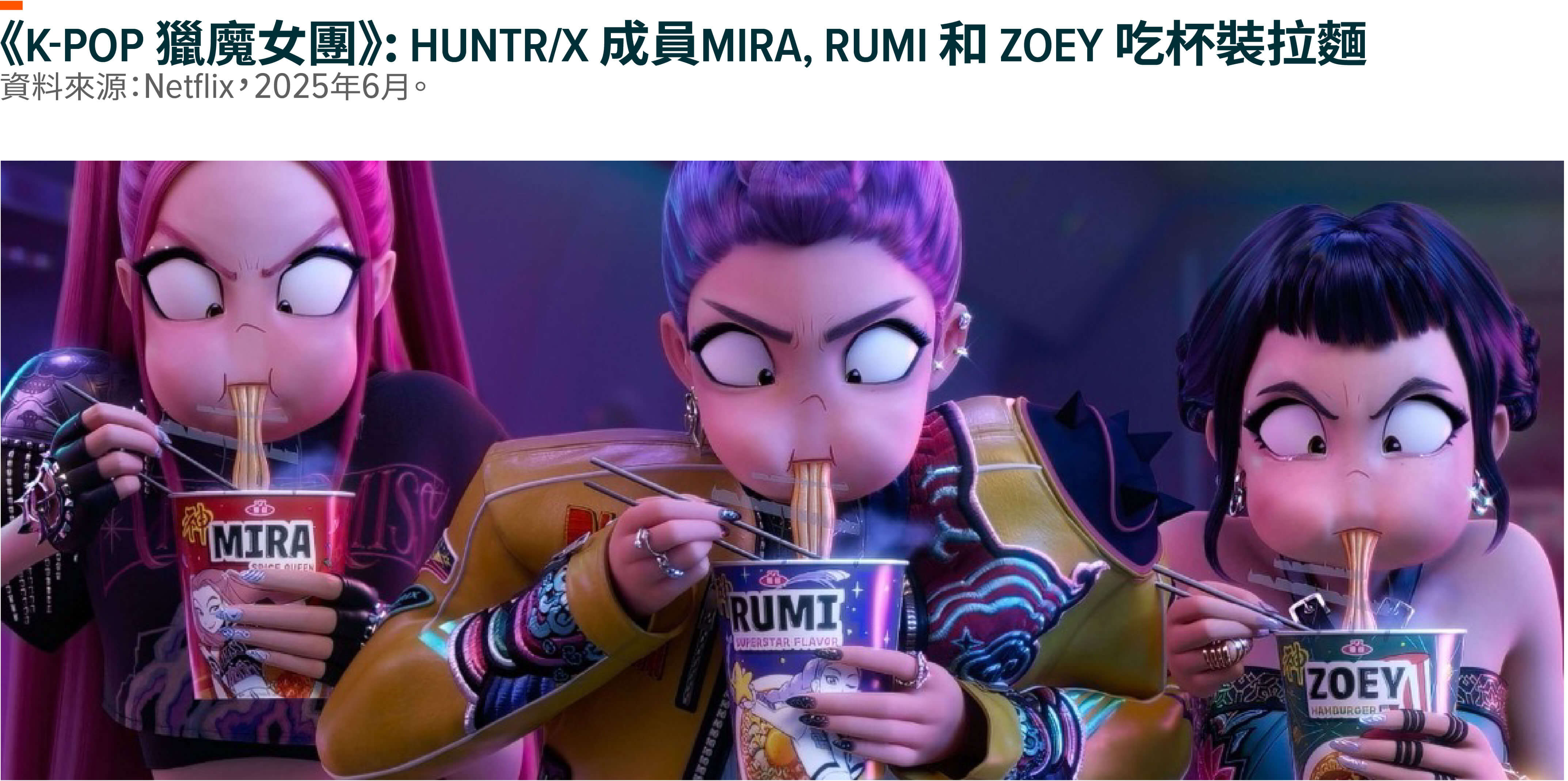 由 Sony Pictures Animation 製作、Netflix 推出的美國音樂奇幻動畫電影《K-Pop 獵魔女團》,講述一個 K-pop 女子團體,過著明星與獵魔人的雙重生活。根據 Prestige 的資料,自 6 月 20 日上映以來,該片一直在國際排行榜上佔據主導地位,在上映首周內就在 26 個國家排名第一,並在 93 個國家進入前 10 名。不僅在亞洲,在美國以及法國、德國等歐洲市場的觀眾群也異常強勁。電影的原聲音樂也躍居排行榜前列。Billboard 報導電影原聲大碟《Golden》在 Billboard Hot 100 歌曲排行榜上名列第四,而《Your Idol》、《How It’s Done》和《Soda Pop》等歌曲在美國和全球的每日流媒體排行榜上持續表現優異。