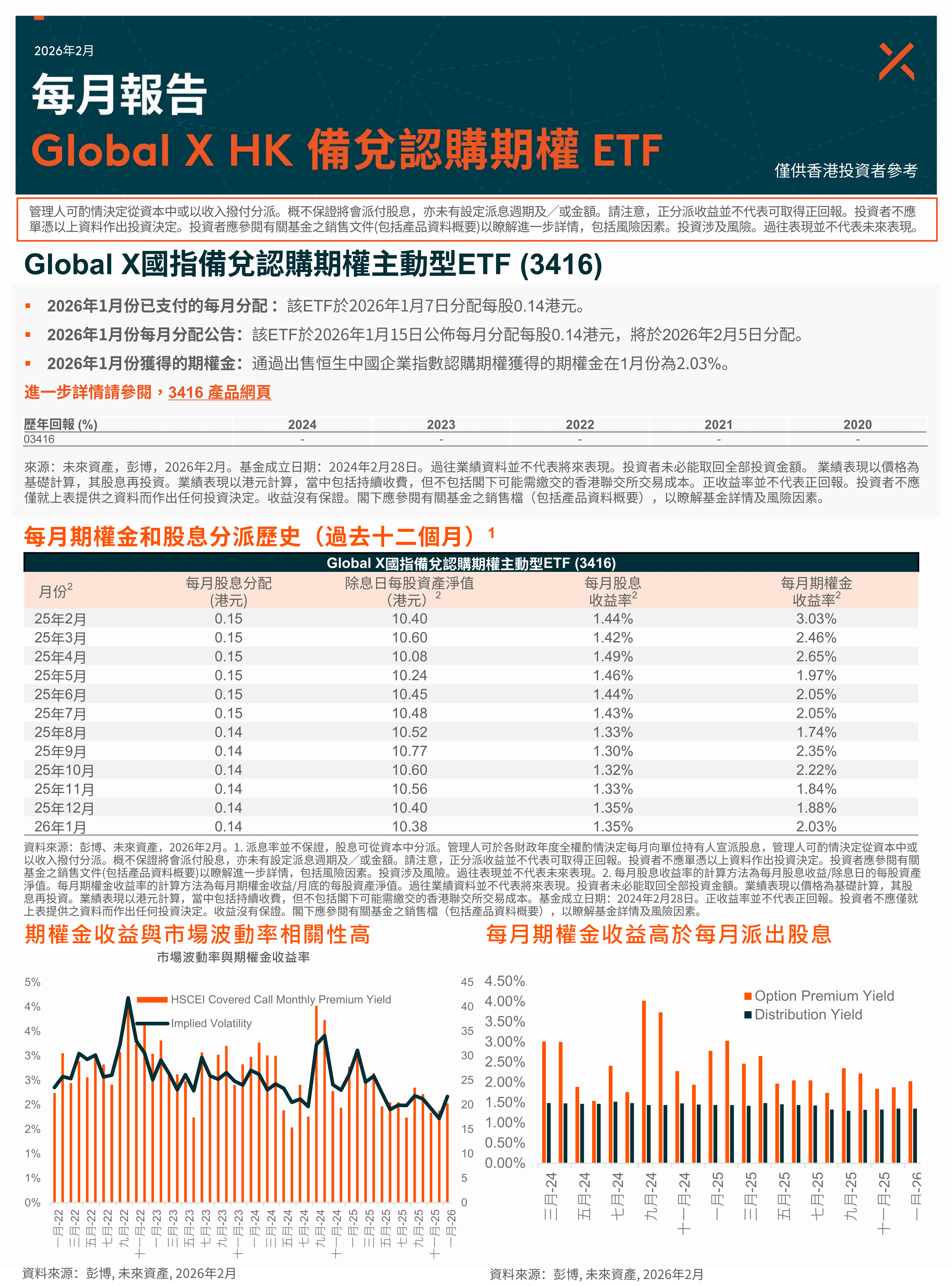 每月報告 – 備兌認購期權ETF – 2026年1月